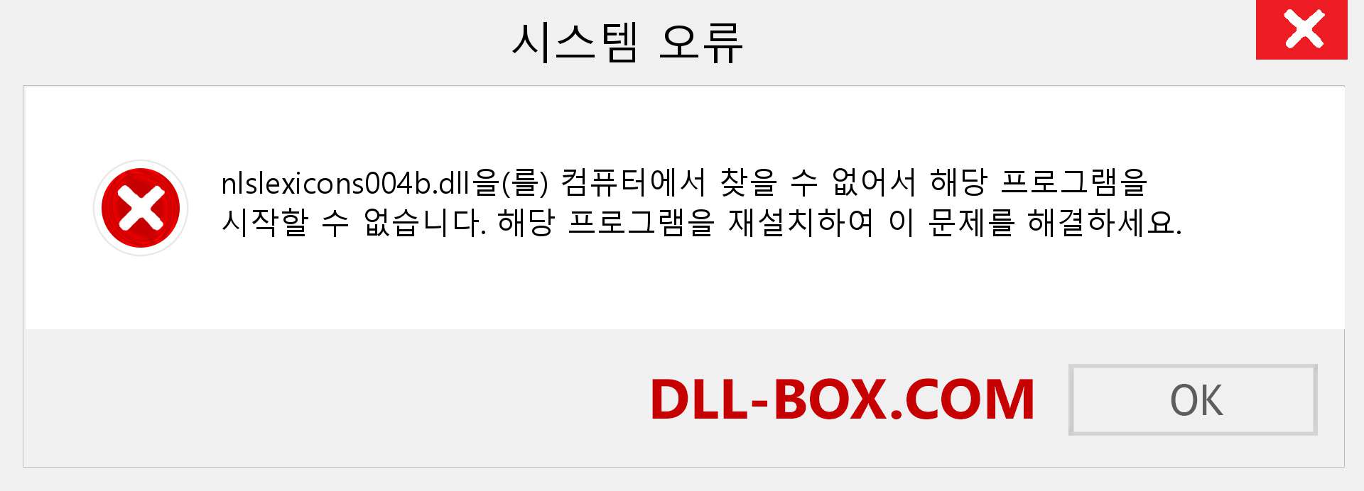 9. nlslexicons004b.dll를 찾을 수 없습니다.